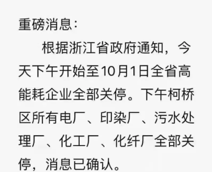 2日,一条有关“绍兴柯桥高耗能企业在国庆节前全部关停”的消息,在业内悄悄流传。